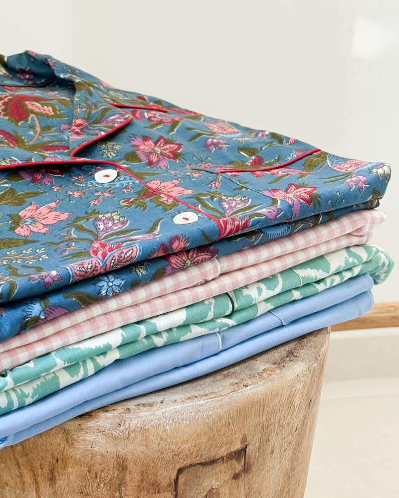 Damen Pyjama blau geblümt